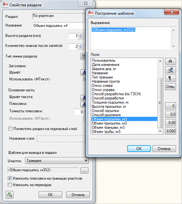 | В участки траншеи добавлены расчетные параметры: <Объем подсыпки, м3>, <Объем присыпки, м3>, <Объем засыпки, м3>, <Объем траншеи, м3>, <Объем трубы, м3>. Данные параметры можно выводить в подвал в разделах Способ разработки траншеи, Способ засыпки траншеи и в пользовательских разделах По участкам. Эту же информацию можно выводить в шаблонных ведомостях. |